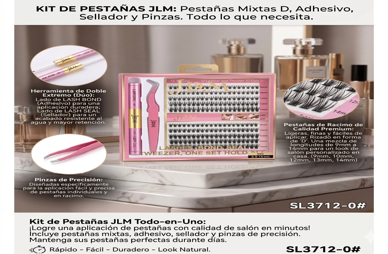 ¿Cansada de gastar una fortuna y horas en el salón? ¡Este kit es tu solución definitiva para lograr pestañas de calidad profesional, en minutos y en la comodidad de tu hogar! ⏱️ Presentamos el Kit de Pestañas JLM Todo-en-Uno, tu boleto para un look de salón personalizado y duradero sin complicaciones. 🤩
